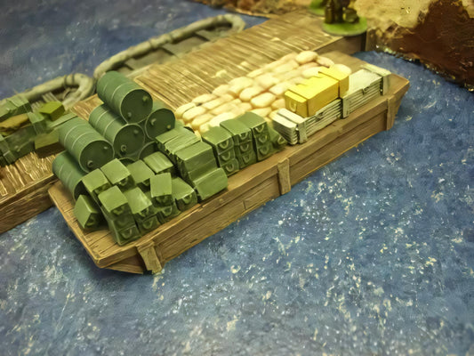 All sorts of really useful things for hiding behind or stowing on military vehicles when gaming using 28 mm tall figures. Let your imagination run wild as you plan your next big game.