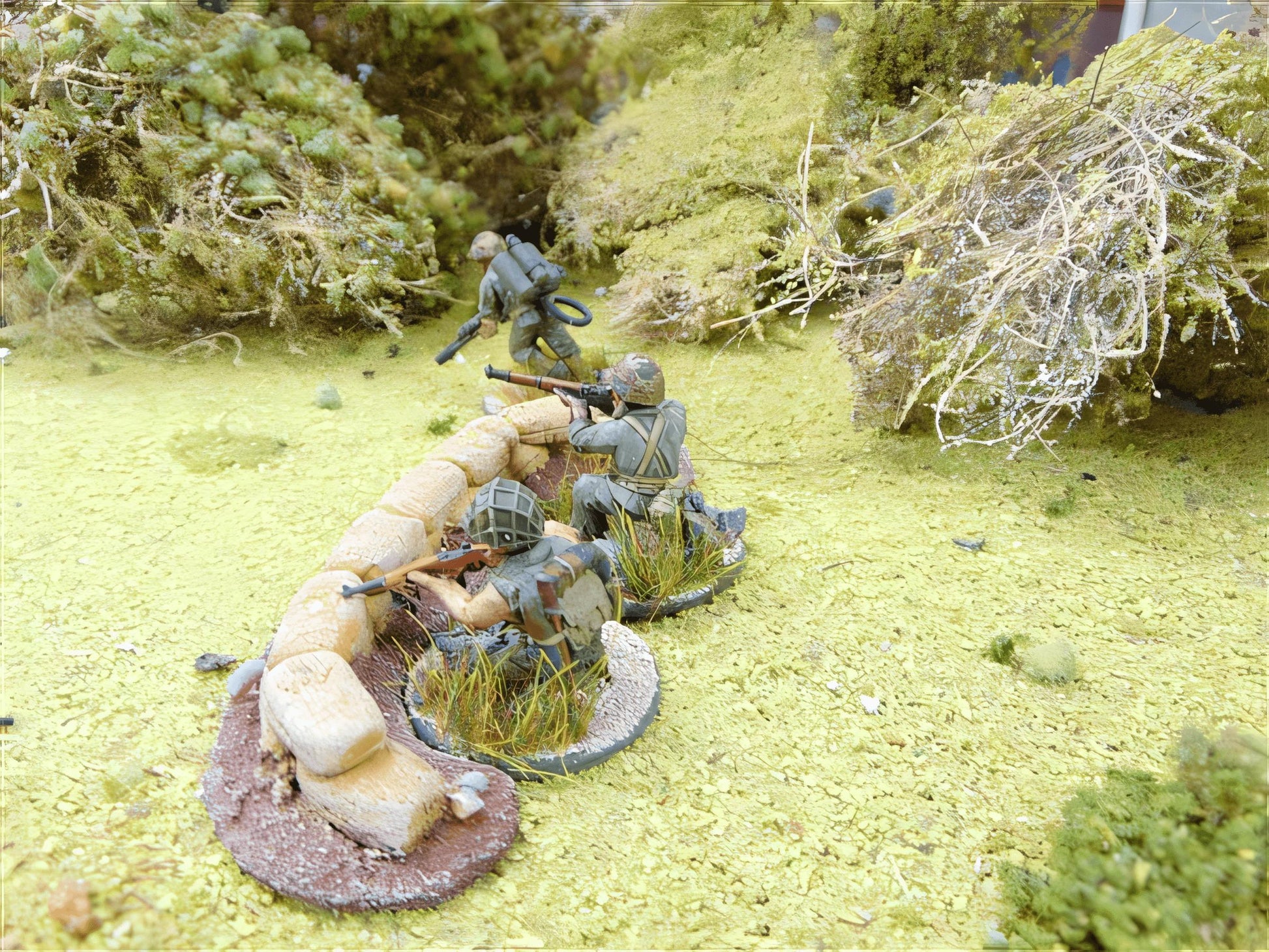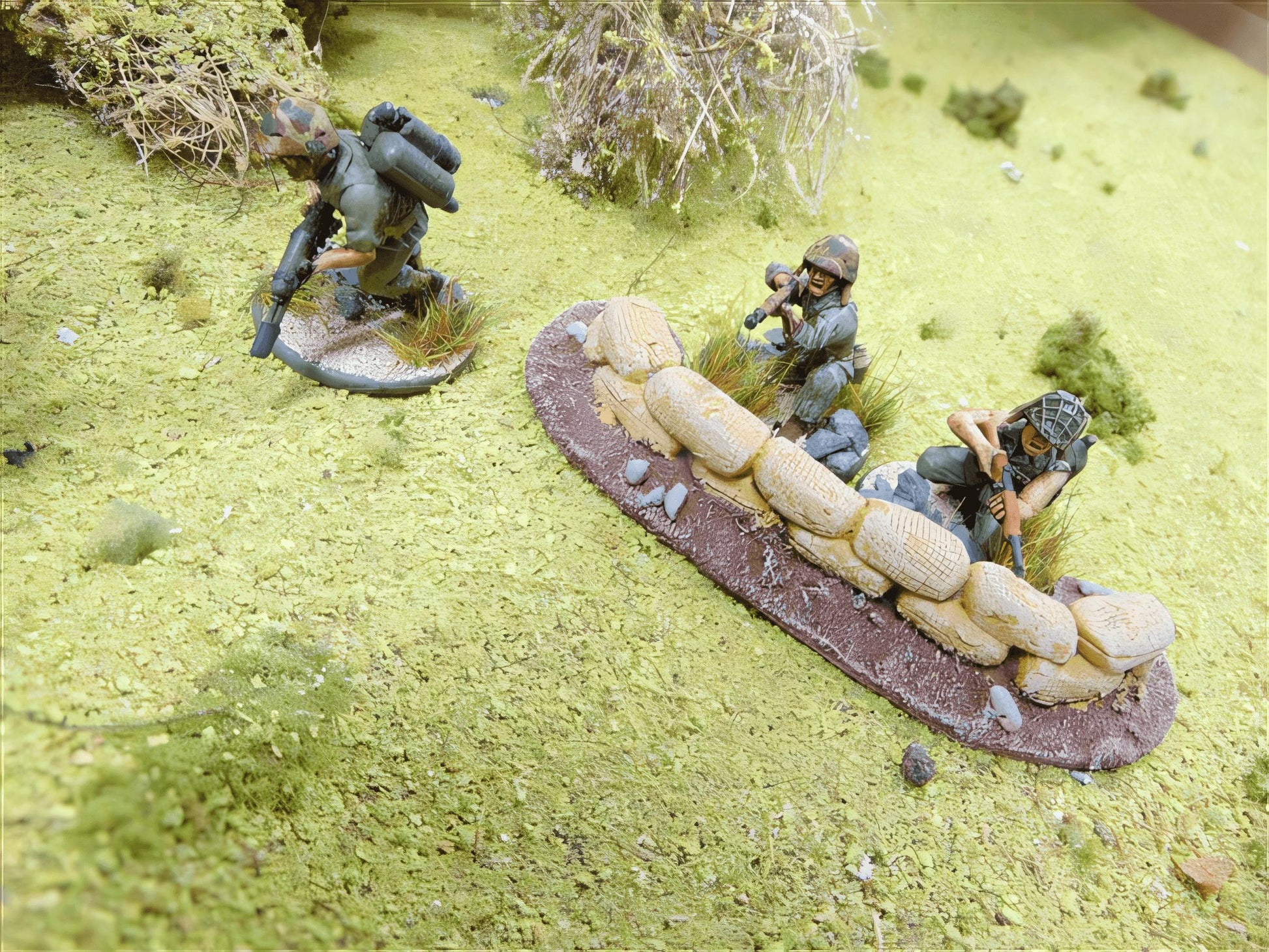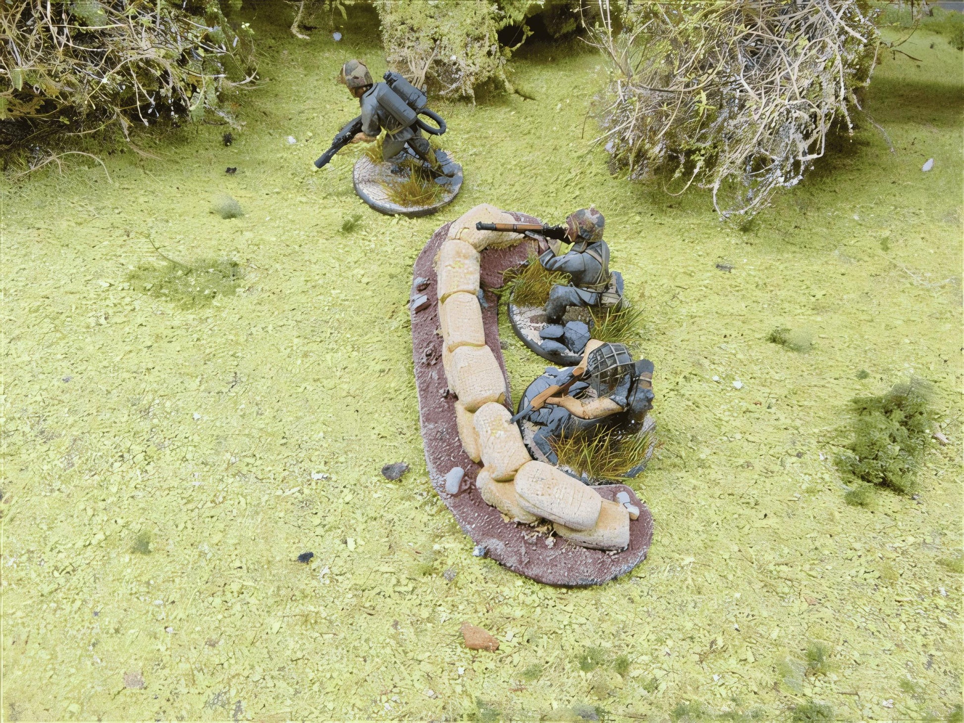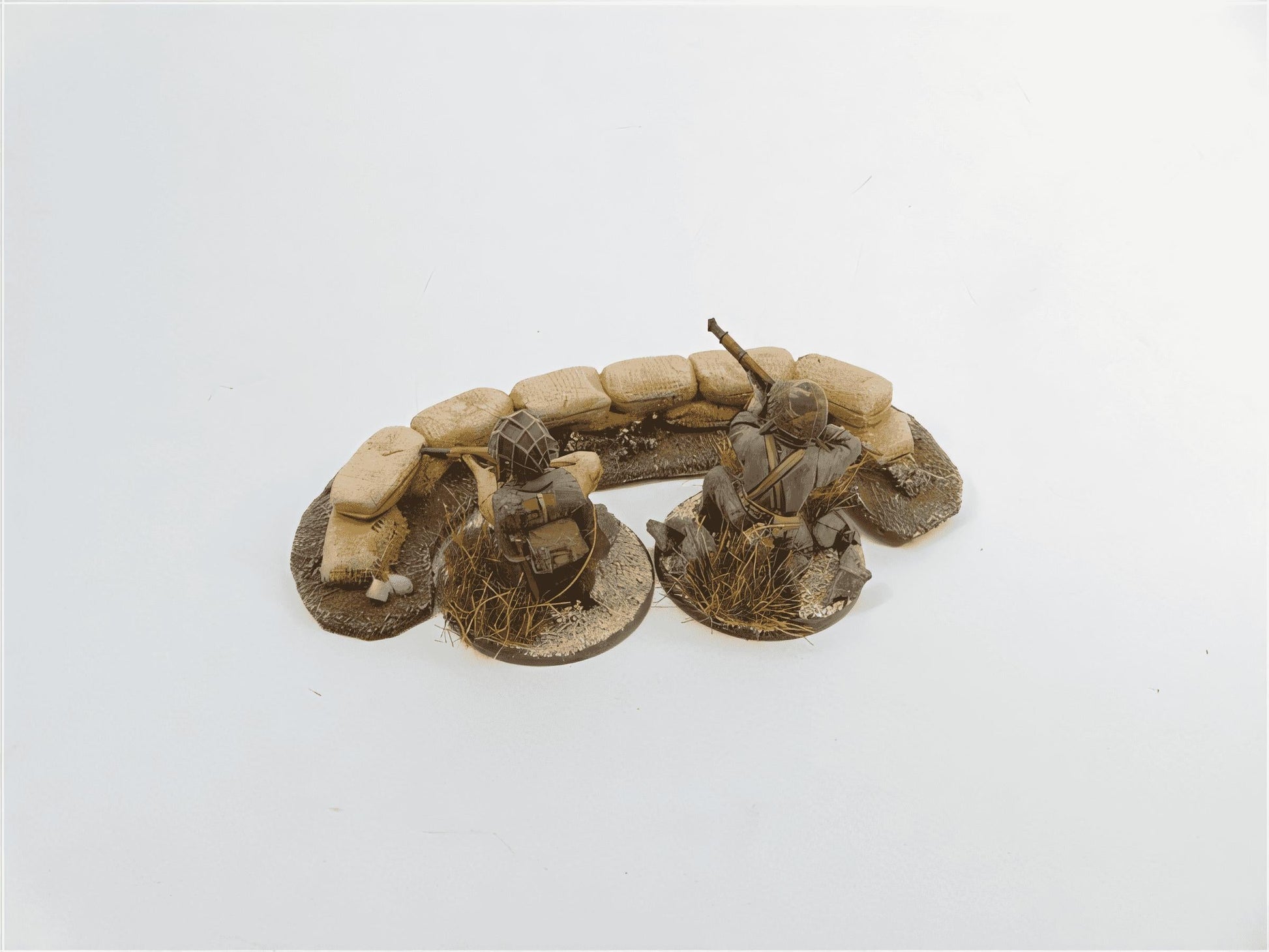 1: 56 scale for 28 mm wargames. A small 2 man foxhole forward edge defence. Ideal for 25 mm dia based kneeling figs.