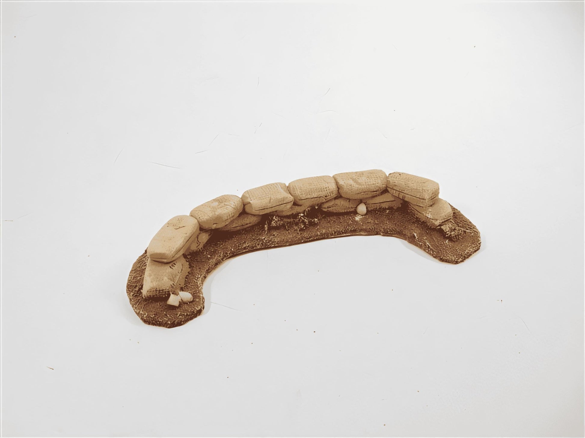 The problem we face on the flat wargames table is representing holes in the ground. A sand table solves this but at immense weight and expense so this model is designed to play the role of the forward lip of a hole in the ground. This 1:56 scale model is designed to enhance your wargaming experience with its realistic representation of a small 2-man foxhole which gives the sense of a hastily prepared defence position.