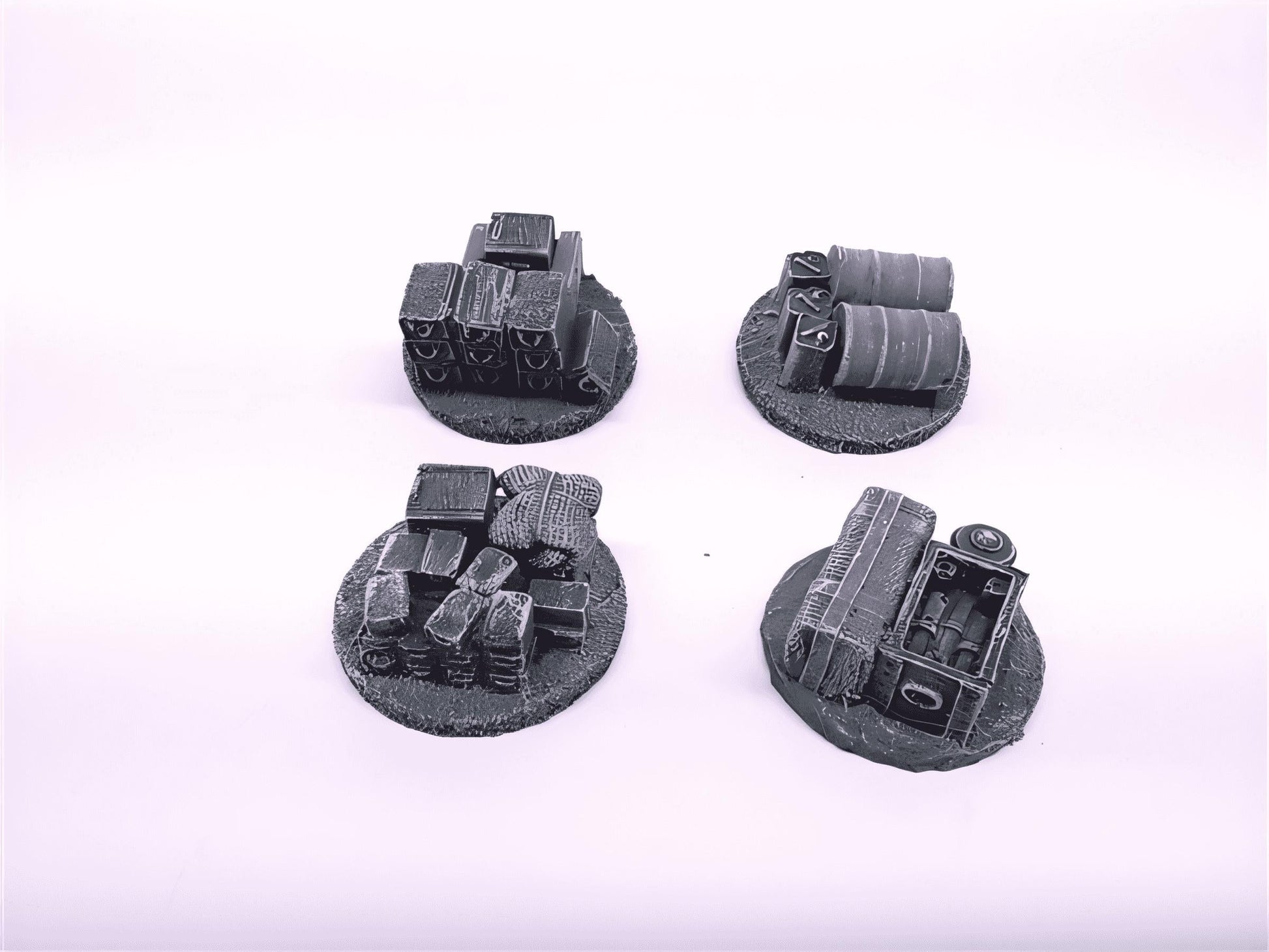 Another group of objective markers or simply use them to add some detail to your planned scenario. This set comprises 4 different lots of supplies.