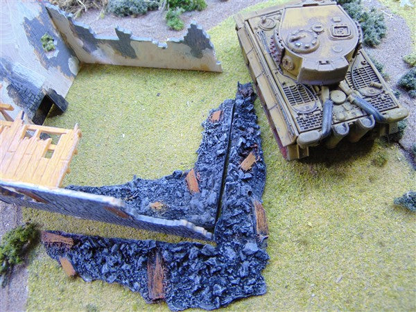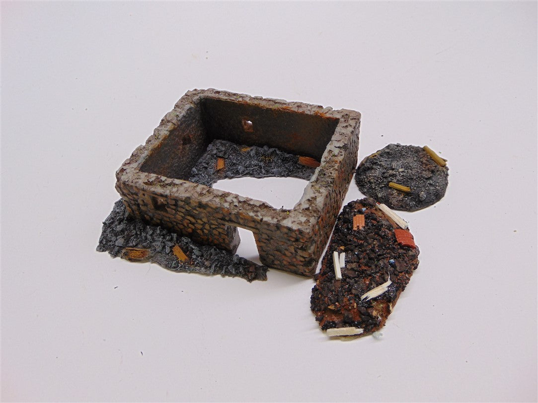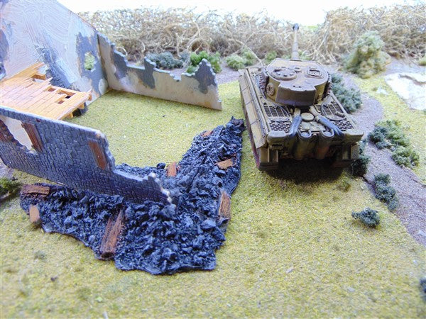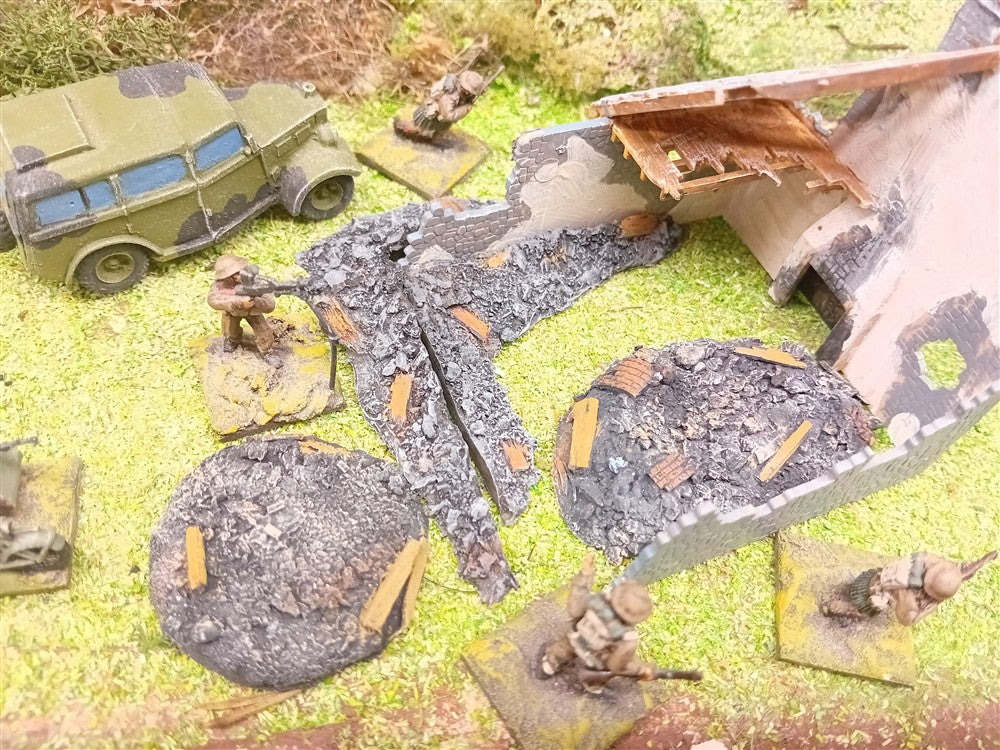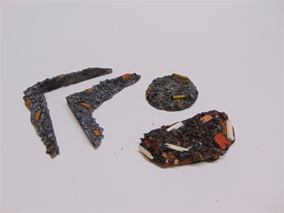1:72 for OO railways or 20mm wargames. 4 piece assorted rubble piles for ruined buildings
