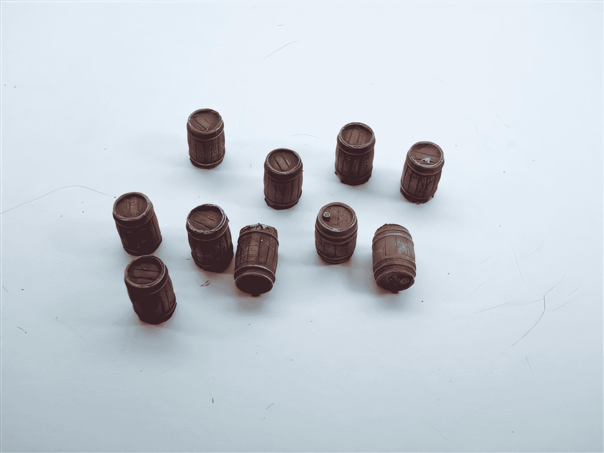 4mm/1:76 for OO or 20mm; 10 individual solid cast oak spirit casks.