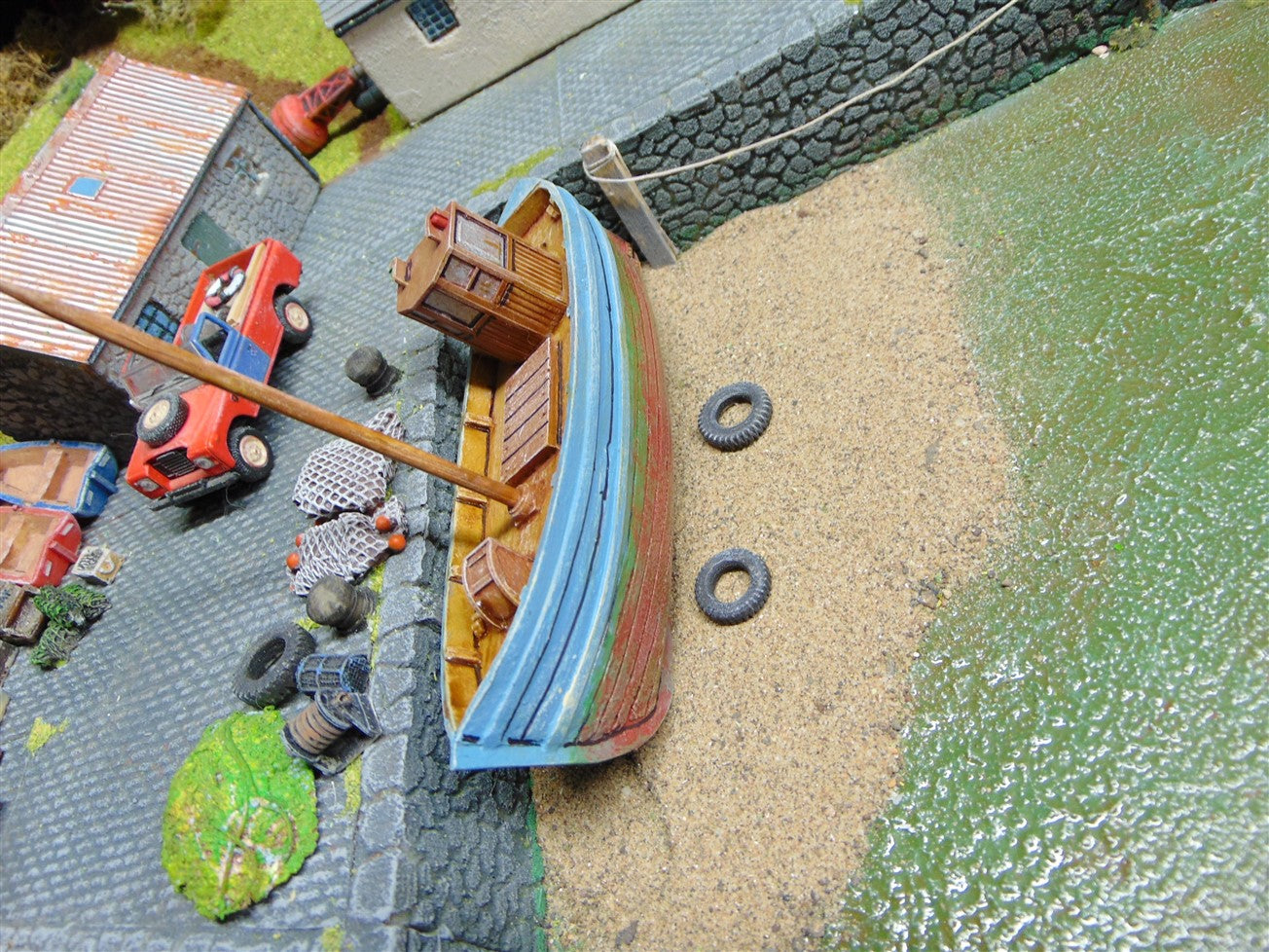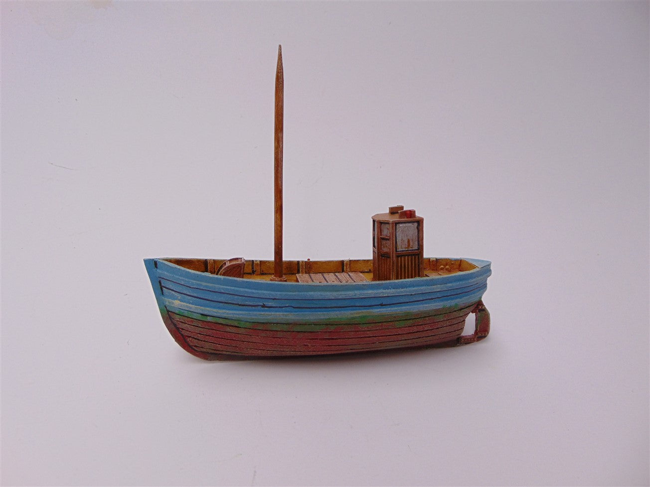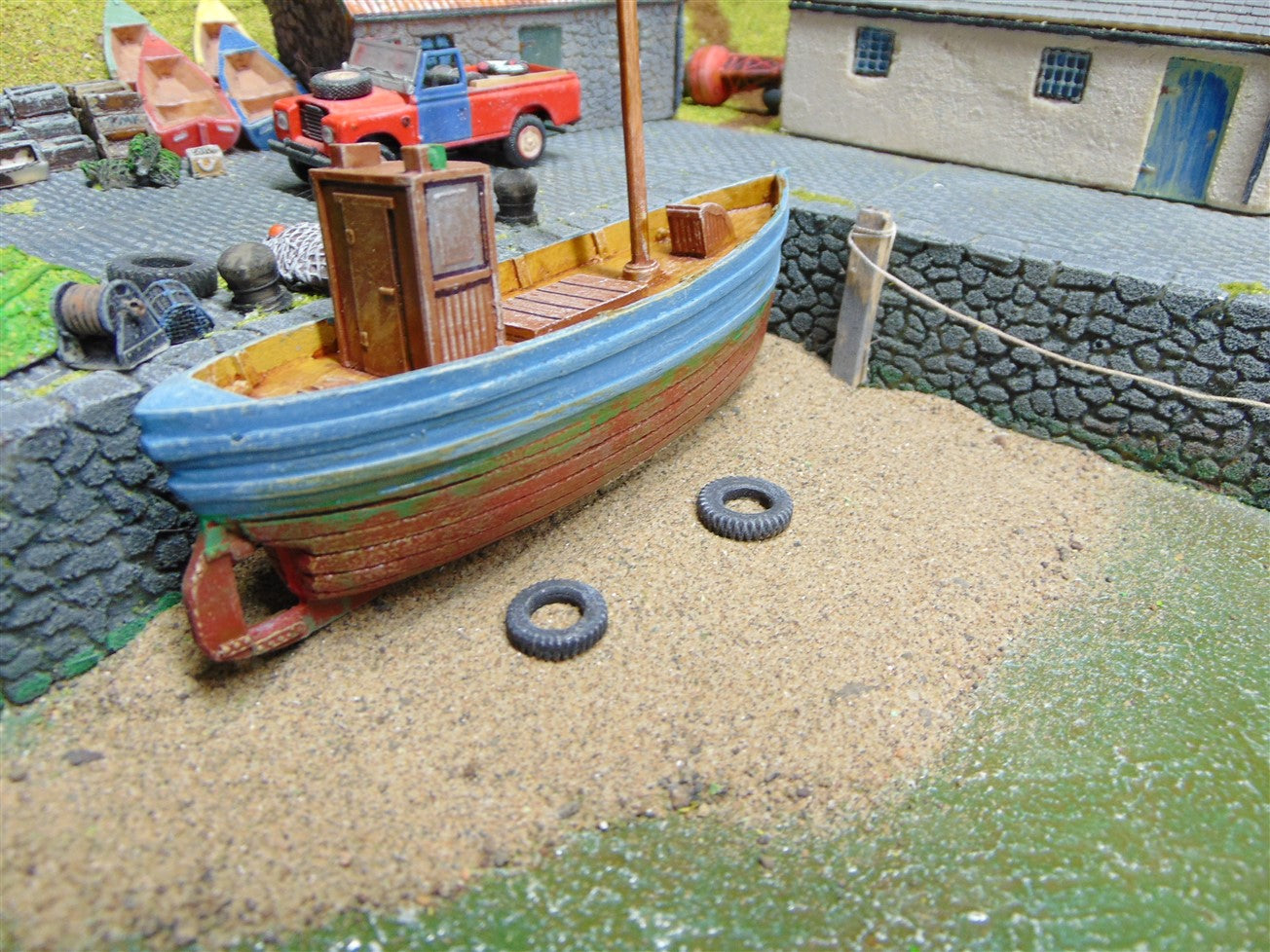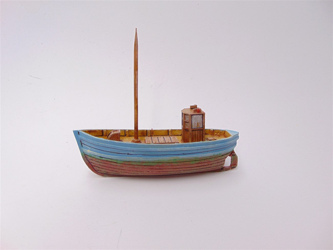 4mm/1:76 for OO or 20mm Small Scottish type motor fishing vessel with wheelhouse for 1 man and awaiting the refitting of prop. This version is full hulled so it can be used on a boatyard slipway or in a low tide harbour scene.