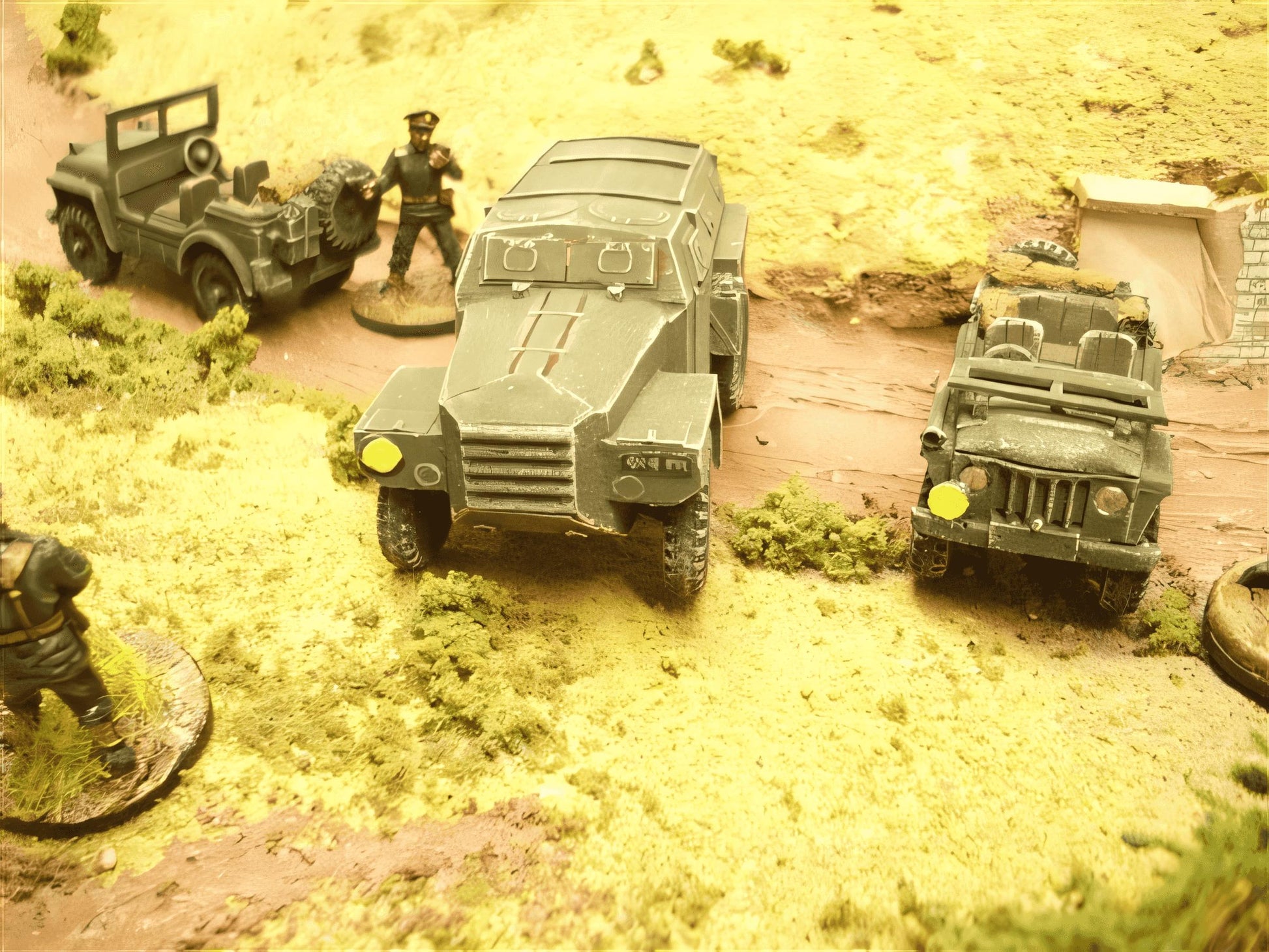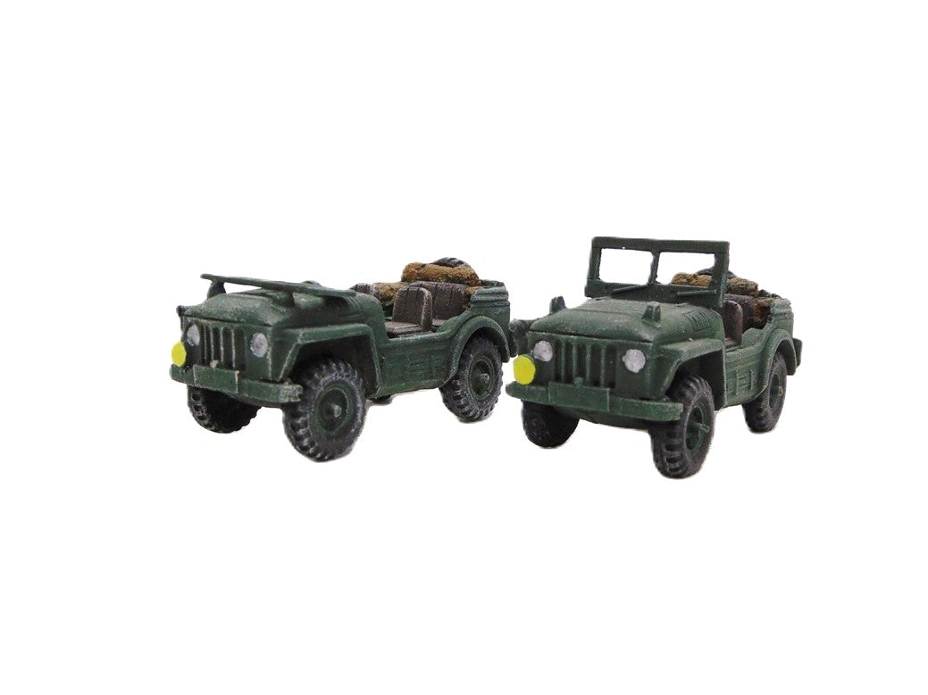 1:56 scale for 28 mm wargames. British Army post war 4 x 4 'jeep' alternative. Simple 7 piece QUICKIT comprising body, 4 wheels, windscreen and steering wheel.