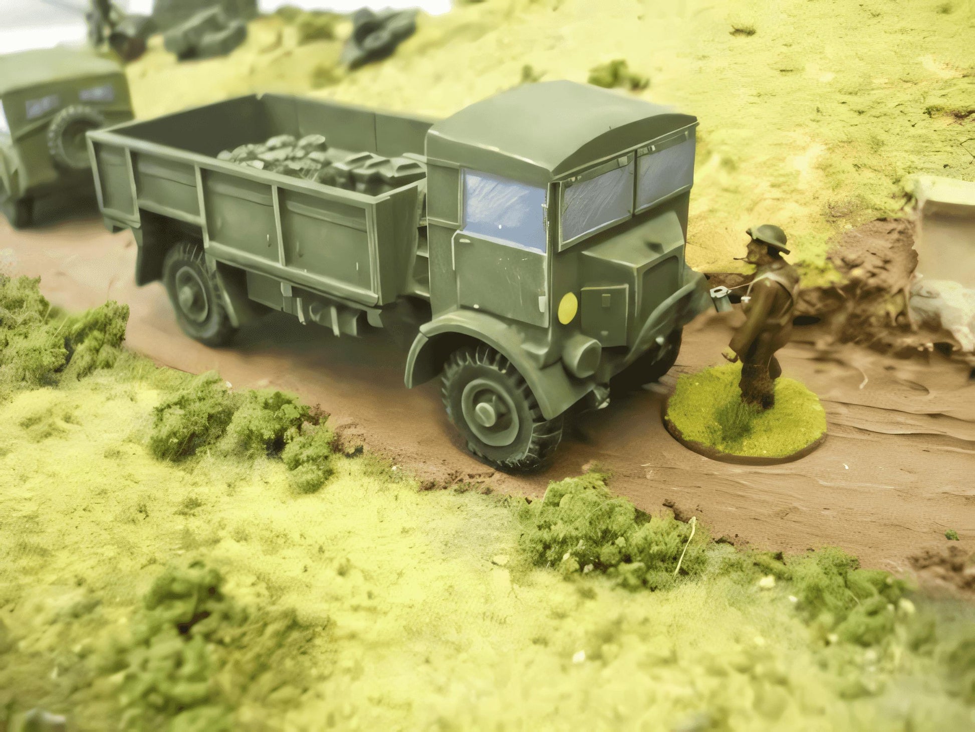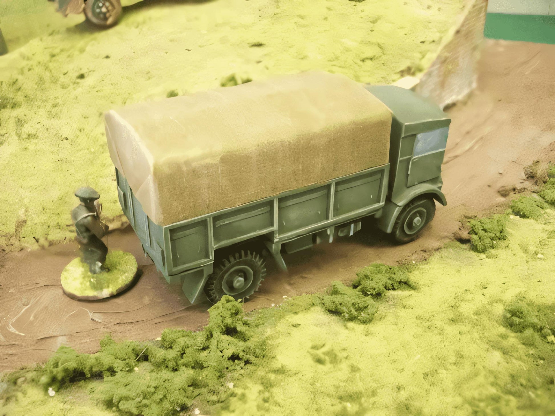 "To achieve a similar finish to this model, I first applied a primer to ensure the paint would adhere well. Next, I covered the main body in a matte field green, using a small brush to reach the finer details and crevices. For the canvas cover on the back, I opted for a khaki shade, adding subtle highlights to simulate wear and fabric folds. The windows received a light blue tint to suggest reflection. Weathering was done sparingly with a dry-brushed application of a lighter dust colour on the tyres and lower body to depict operational use. Finally, a protective matte varnish was used to seal the paintwork and add durability." - Stuart