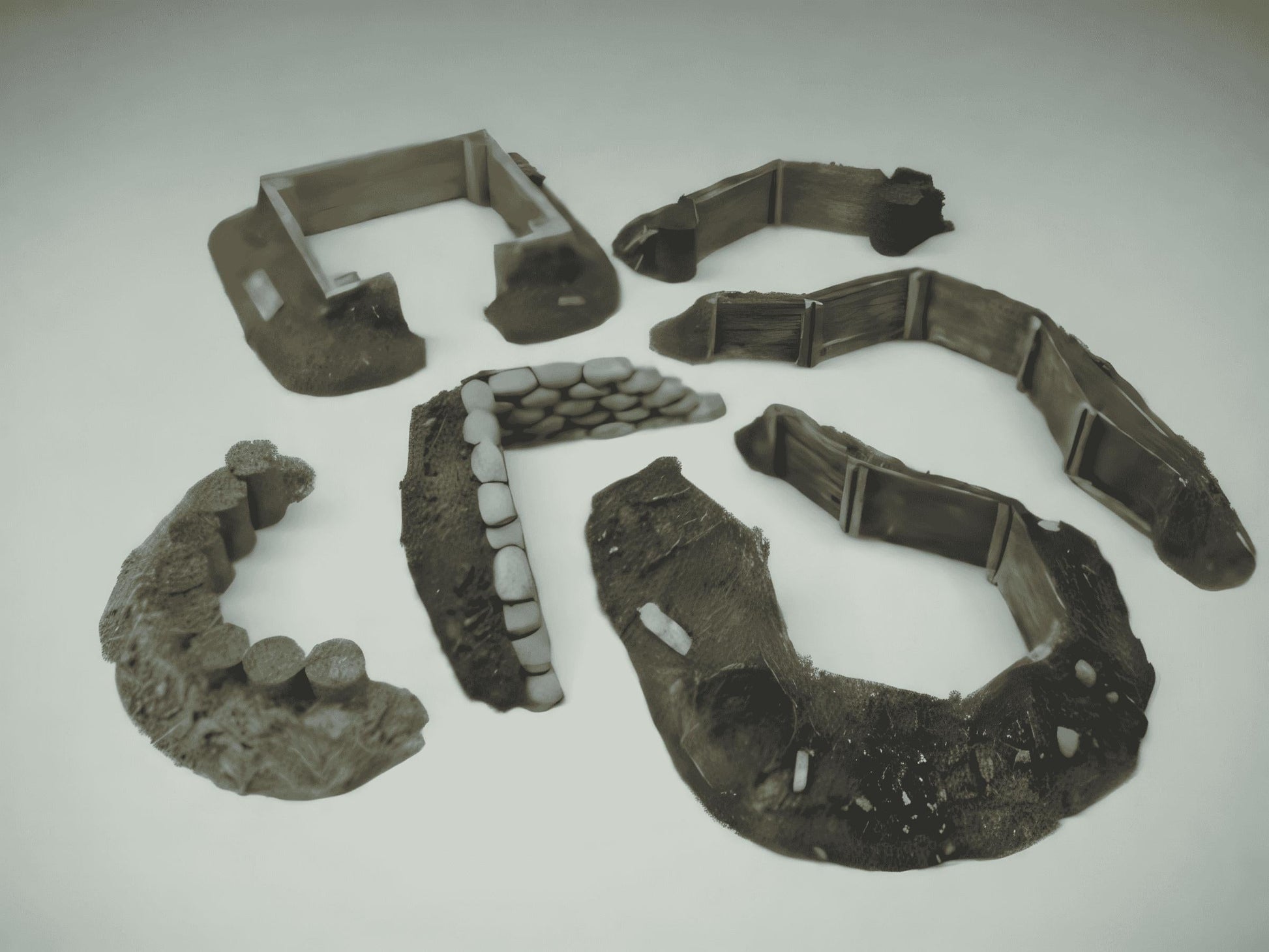 1:56/1:48 for 28 to 32 mm figs. 6 of our most popular earthworks for 28 mm figs. NOTE the oil drums on one of the models are 1:48 scale so slightly taller than 1:56.