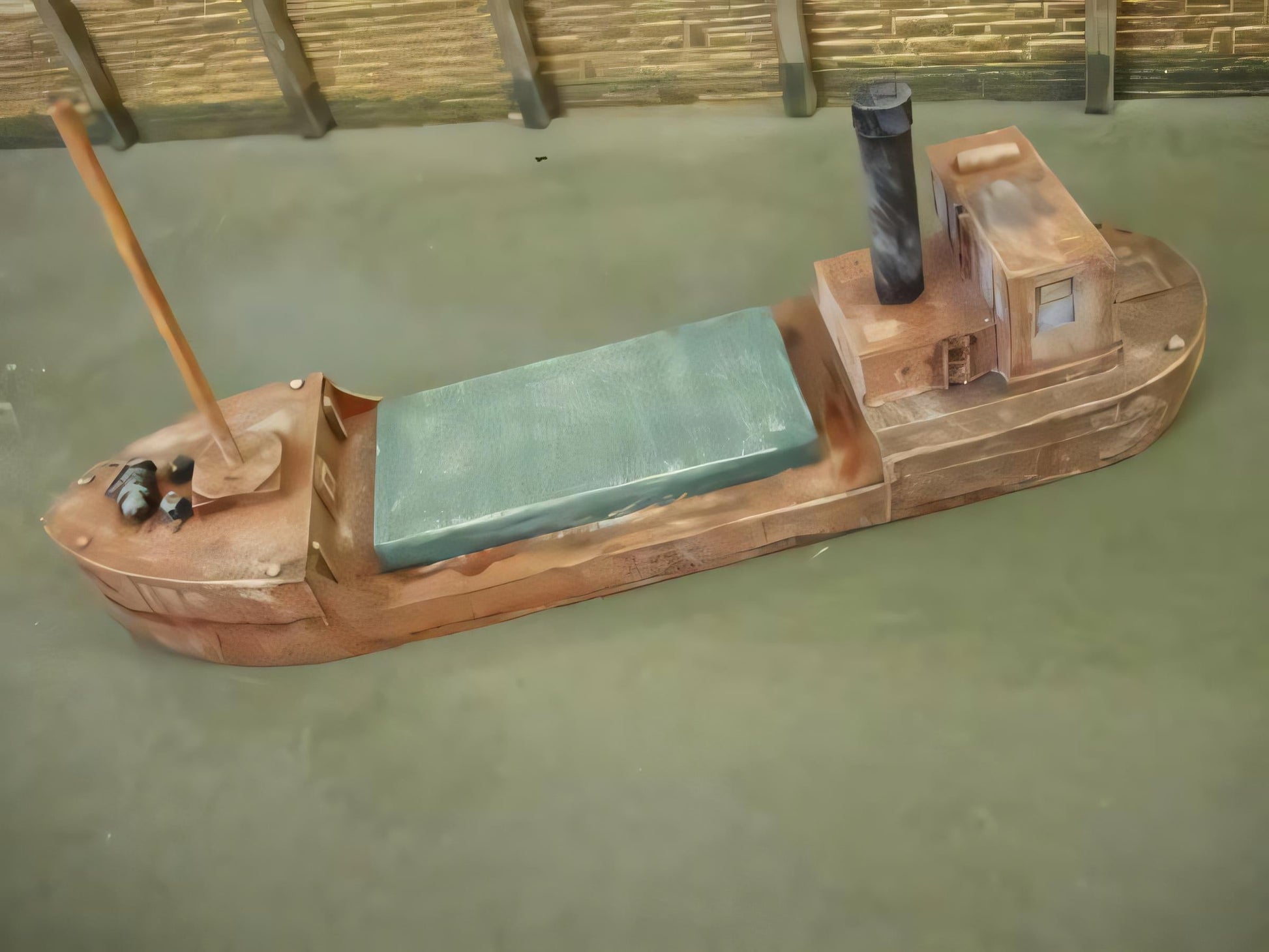 1:100 for 15mm. Small cargo boat for rivers or short sea crossings.