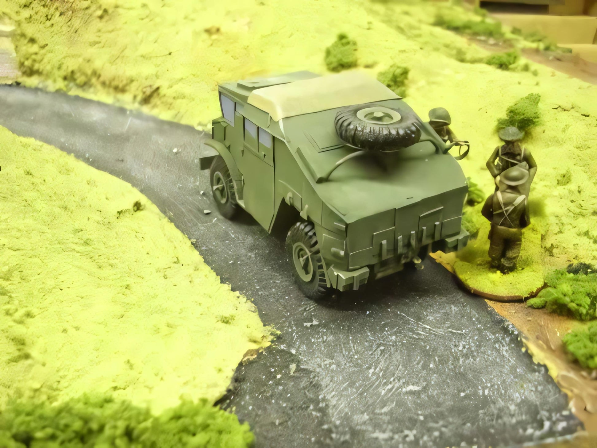 This Canadian Military Pattern Quad tractor for 28mm figures. Used for towing artillery like the 17pdr and 25pdr guns.