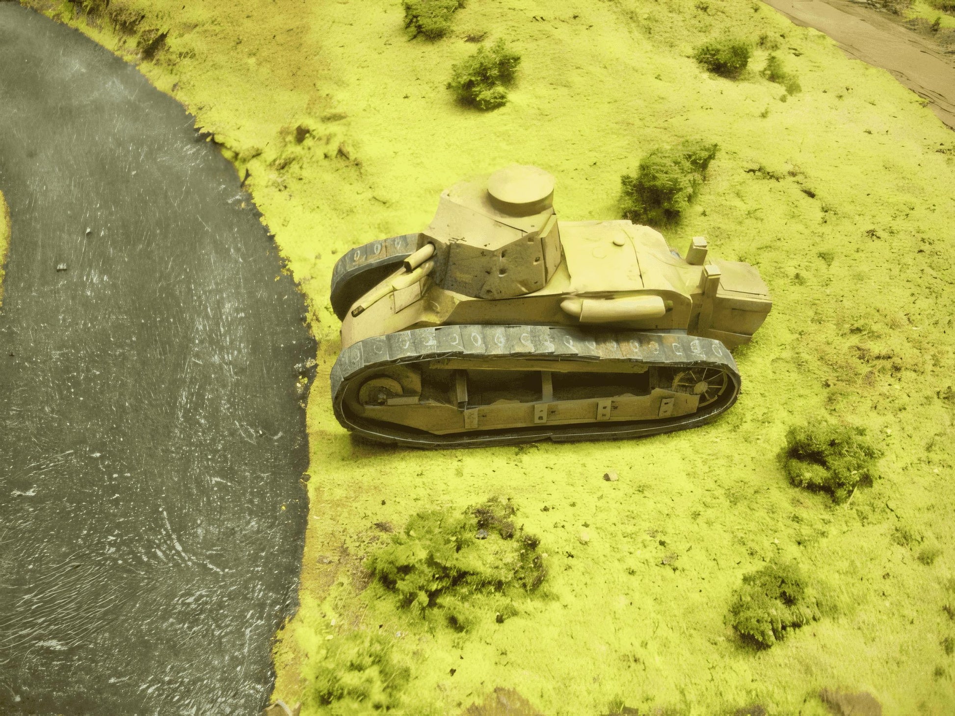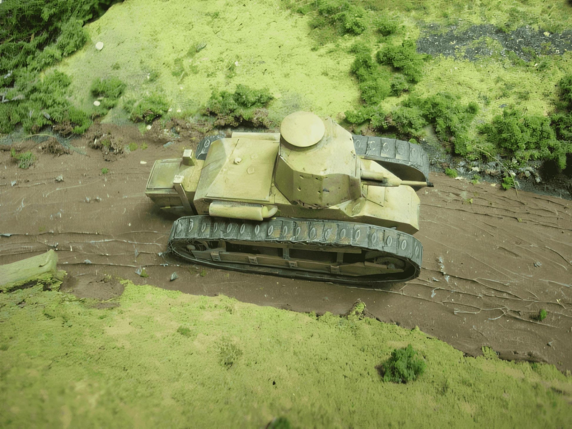 "To achieve a finish similar to the model in the image, I started with a base coat using a matte desert yellow, Once dry, I added shadows and highlights to enhance the details, using washes and dry brushing. The tracks received a dark grey base, followed by a light dry brush of metallic silver to replicate wear. Lastly, a matt varnish was applied to protect the paint work and add to the longevity of the model." - Stuart