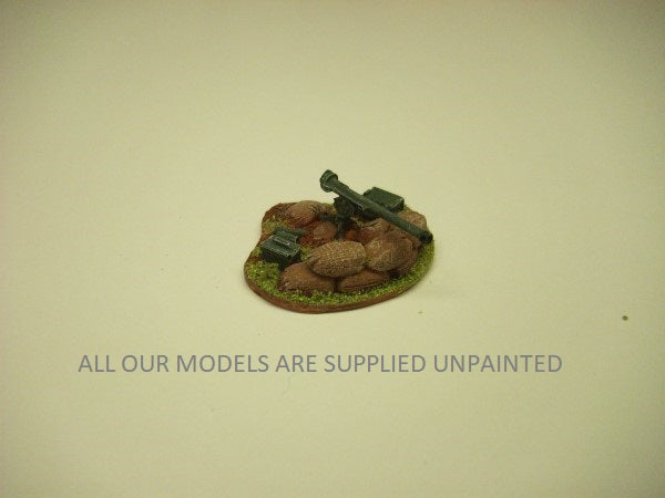 For the wargamer using 28mm figures in their historical gaming this U.S. recoilless rifle comes on a base with sand bags for support. It is a one piece casting, so no assembly is needed. It is just one of my range of 1:56 scale resin cast pieces that are designed to help you create all sorts of interesting scenarios in your tabletop gaming. Whether terrain, building, vehicle or detail accessory you are sure to find lots of unique pieces in this collection of scale miniatures. As a keen gamer myself, I understand the importance of accuracy and realism in models for historical wargaming plus the need for speed from purchase to table top. I have tried to make as many of my models as I can requiring no assembly. Some do, but I have tried to keep the parts to as few pieces as possible. All are supplied unpainted giving you the opportunity to personalise it with a paint scheme that fits your own game's era and theatre. The final look is up to you.