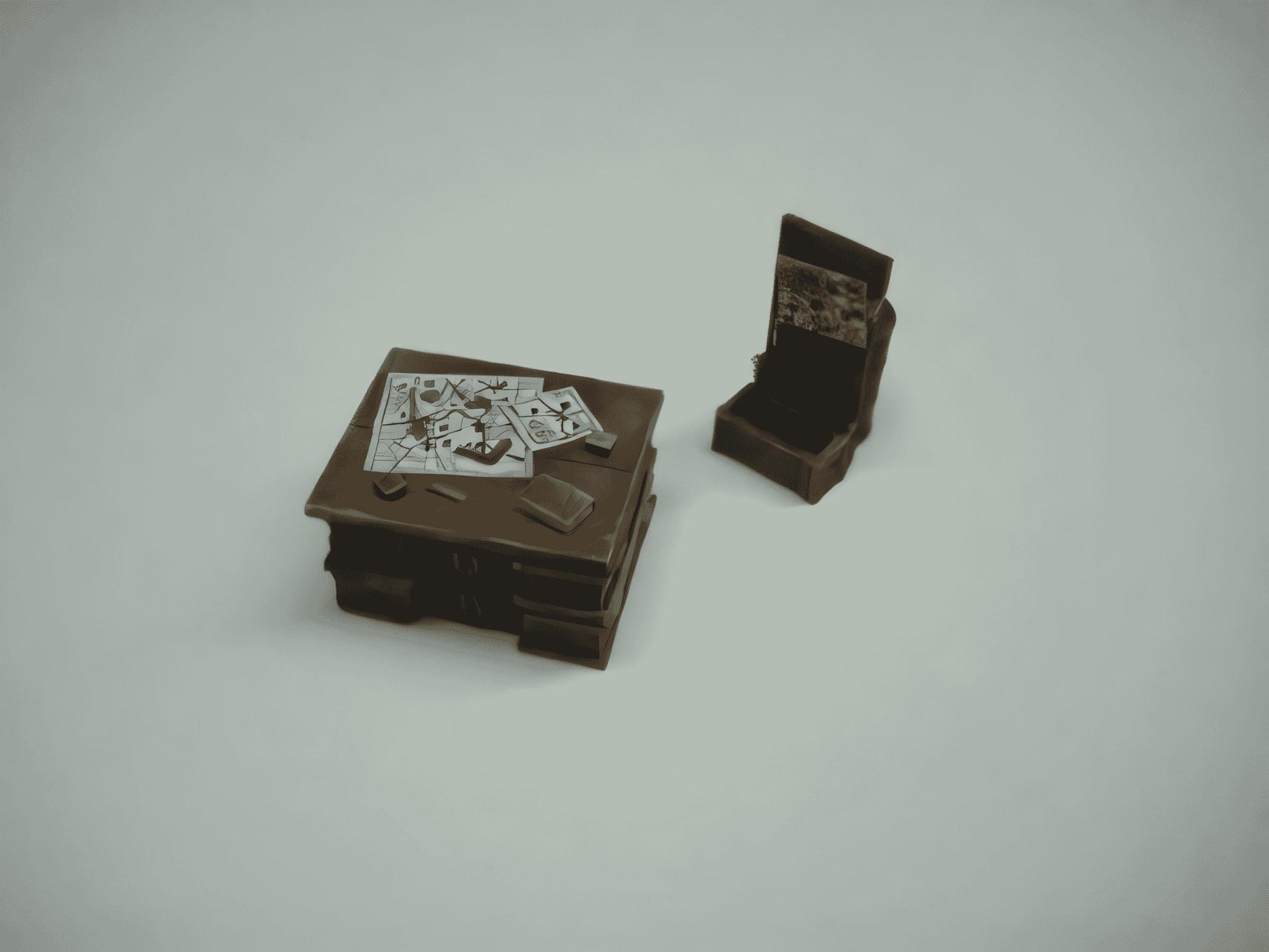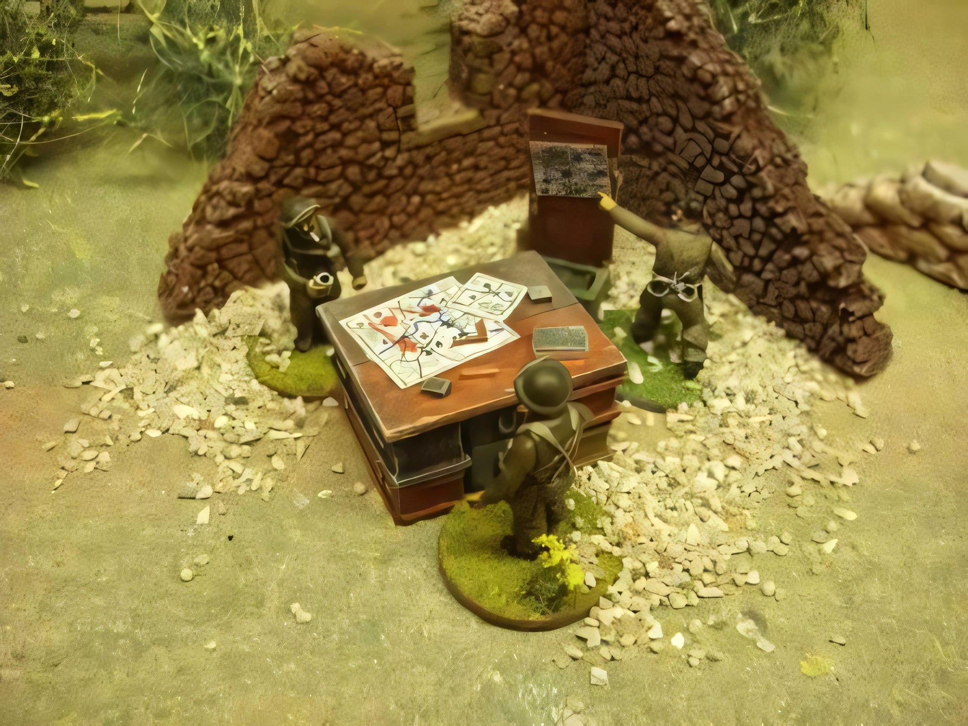 This makeshift map table resting on boxes + an old door and oil drum as a map board makes for an interesting and unusual scene.