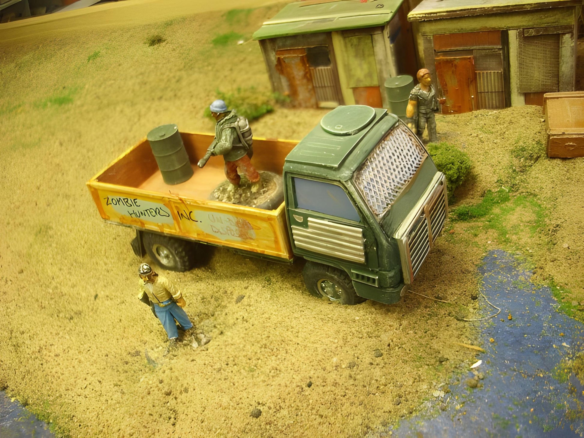 1:56 scale for 28 mm wargames. A lightweight modern truck with extra cab protection. Not Not based on any particular make or model. Simple 3 piece resin kit.