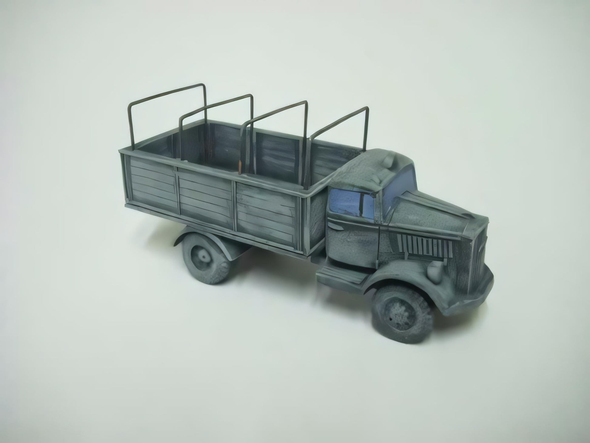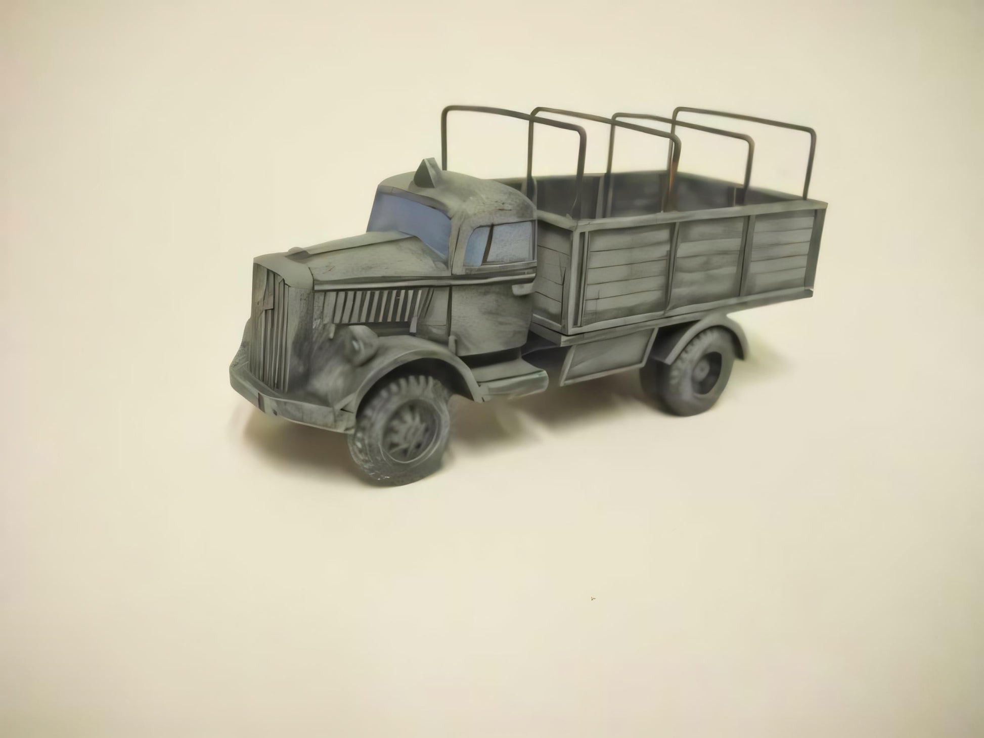 Another Opel Blitz truck to add to your collection of German vehicles. This one has 4 wire hoops representing the vehicle with the tilt folded away. This lorry is just one of my range of 1:56 scale resin cast vehicles that are designed to help you create all sorts of interesting scenarios in your tabletop gaming. Whether terrain, building, vehicle or detail accessory you are sure to find lots of unique pieces in this collection of scale miniatures. As a keen gamer myself, I understand the importance of accuracy and realism in models for historical wargaming plus the need for speed from purchase to table top. I have tried to make as many of my models as I can requiring no assembly. Some do, but I have tried to keep the parts to as few pieces as possible. All are supplied unpainted giving you the opportunity to personalise it with a paint scheme that fits your own game's era and theatre. The final look is up to you.