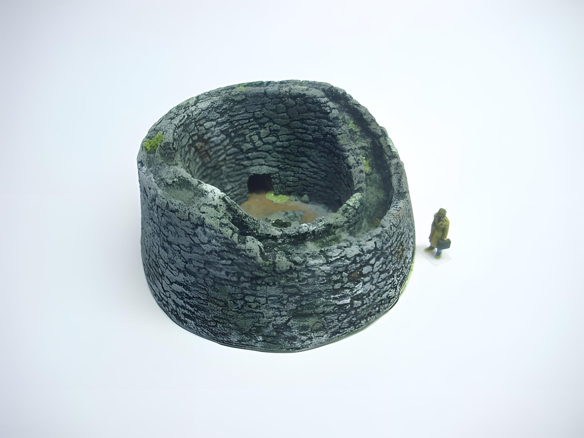 4mm/1:76 for OO model railways and 20 mm wargames. Solid cast model of a ruined Broch. These stone age circular fortified dwellings are found all over Scotland. This would make for an interesting scene on a model railway. Could be used for 20 mm wargames and also as a larger structure for 15 mm figs. Painted up it makes a lovely wee stand alons display model or ornament.
