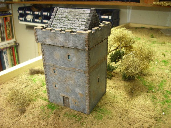 4mm/1:76 scale for OO railways or 20 mm wargames. A hollow cast Scottish tower house or small castle if you like. Where in the whole of Scotland can you go without seeing at least of of this type of architectural gem. This model is cast in 3 pieces. Body, Battlement, Roof.