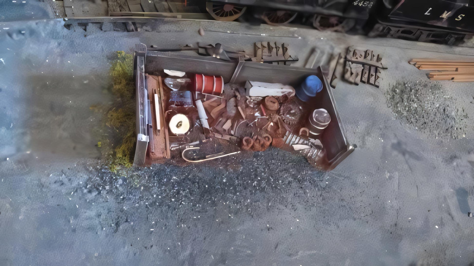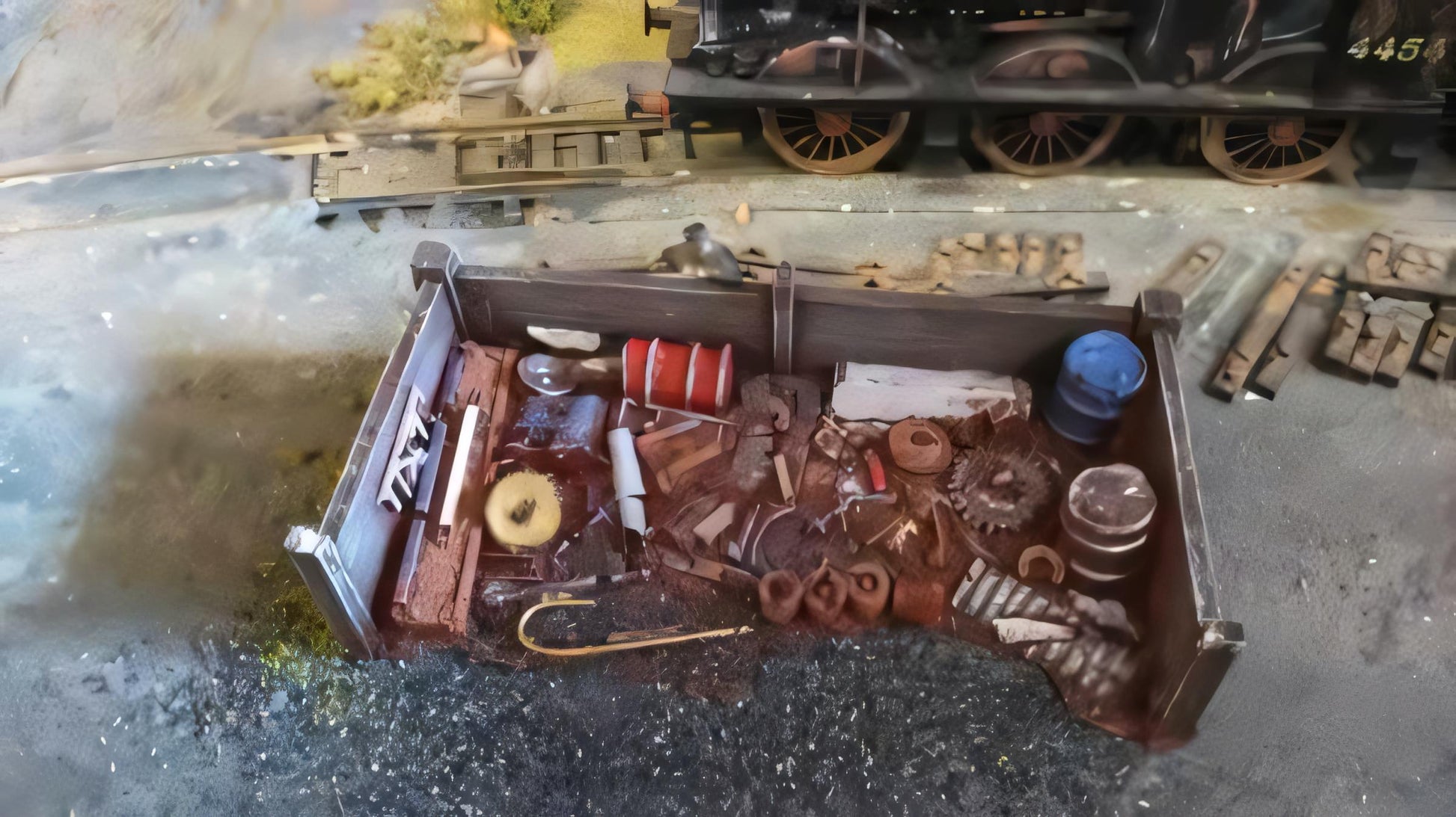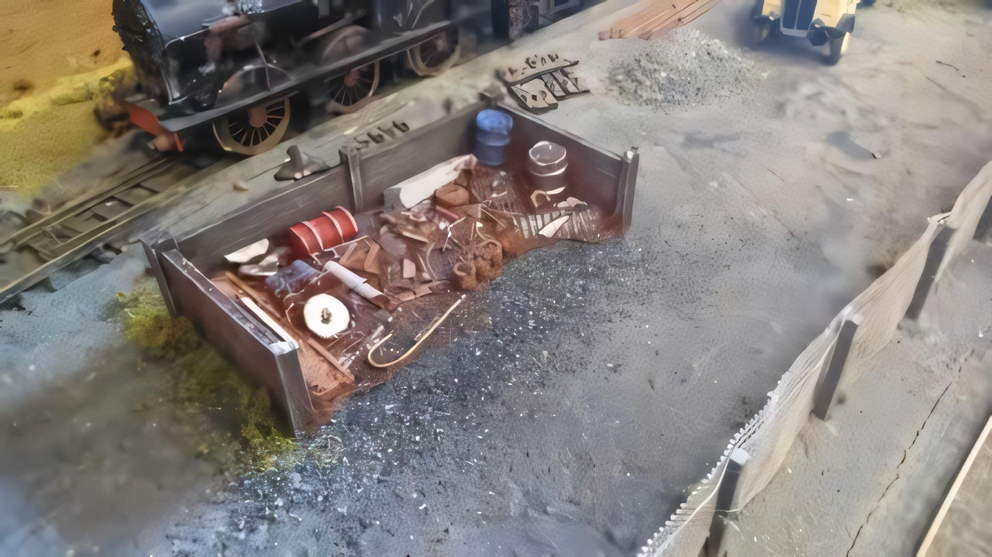 4mm/1:76 for OO . A timber walled bund with scrap metal items.