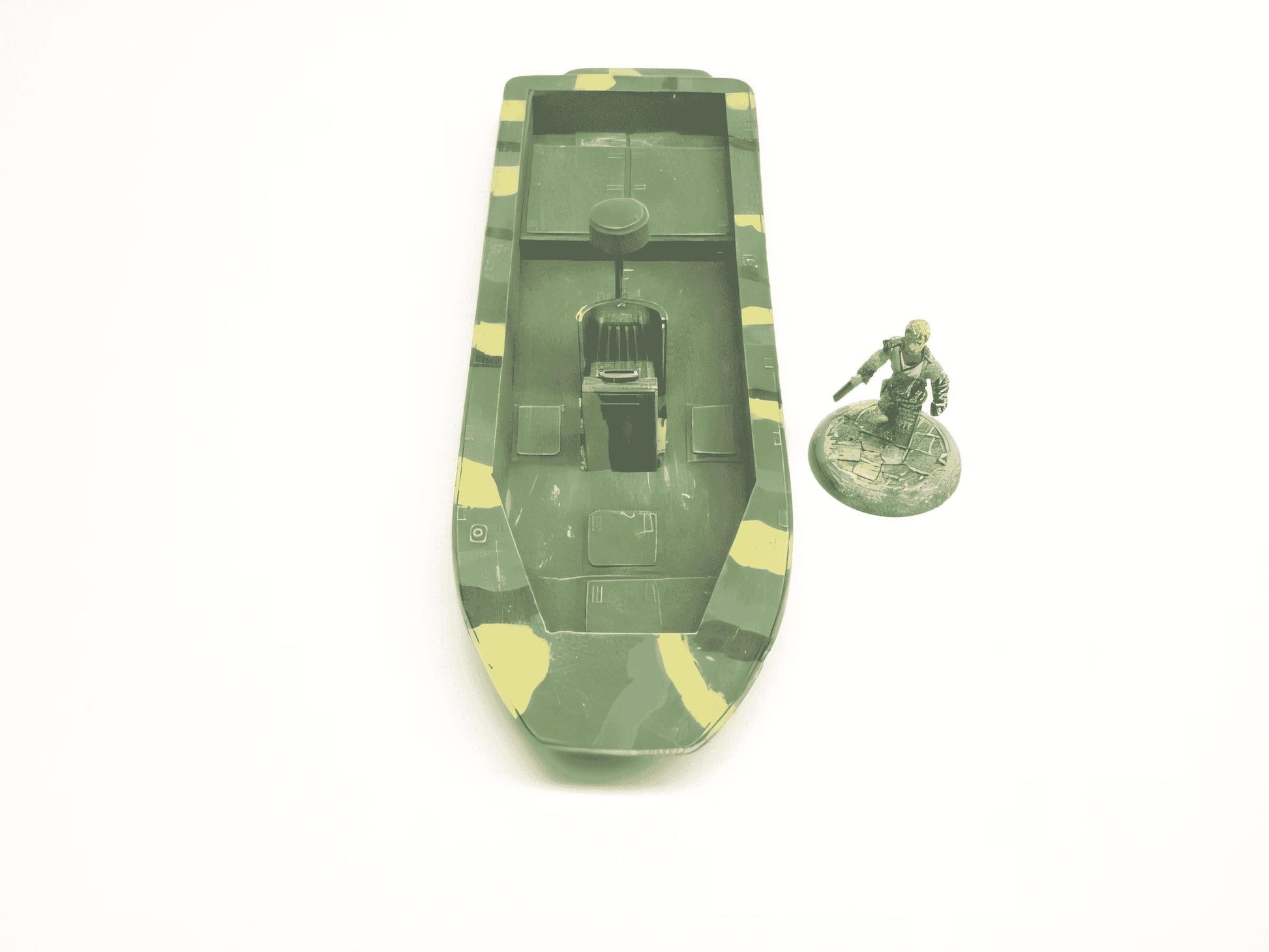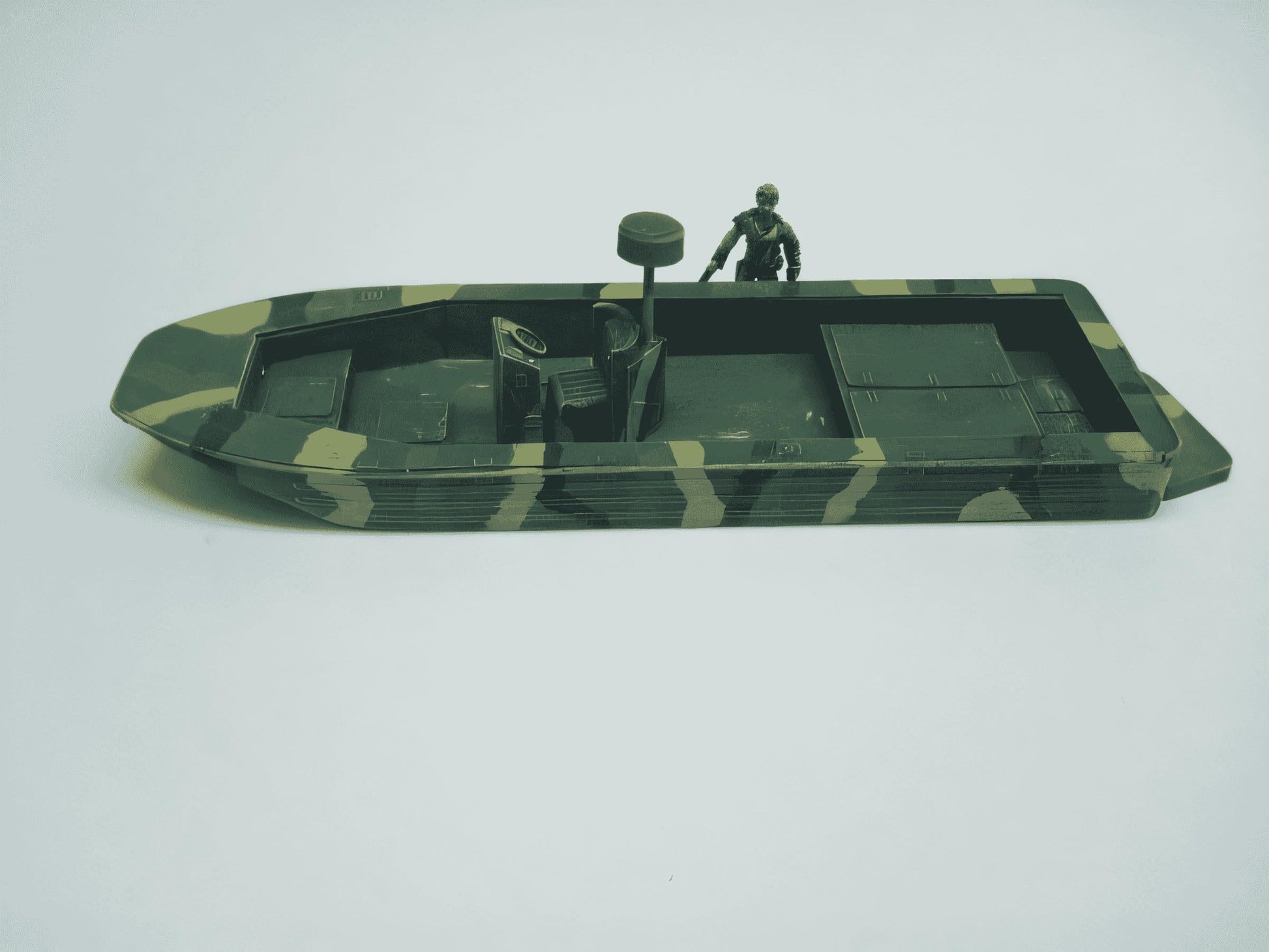 This Special Operations Craft-Riverine This model provides an accurate representation of a craft designed for the rigours of river and coastal missions. The hull measures 180mm L x 58mm W with a 13mm freeboard, and the overall length including the rear step is 198mm. The model stands 41mm high to the top of the radar, suited for a broad range of scenarios on the battleground.
