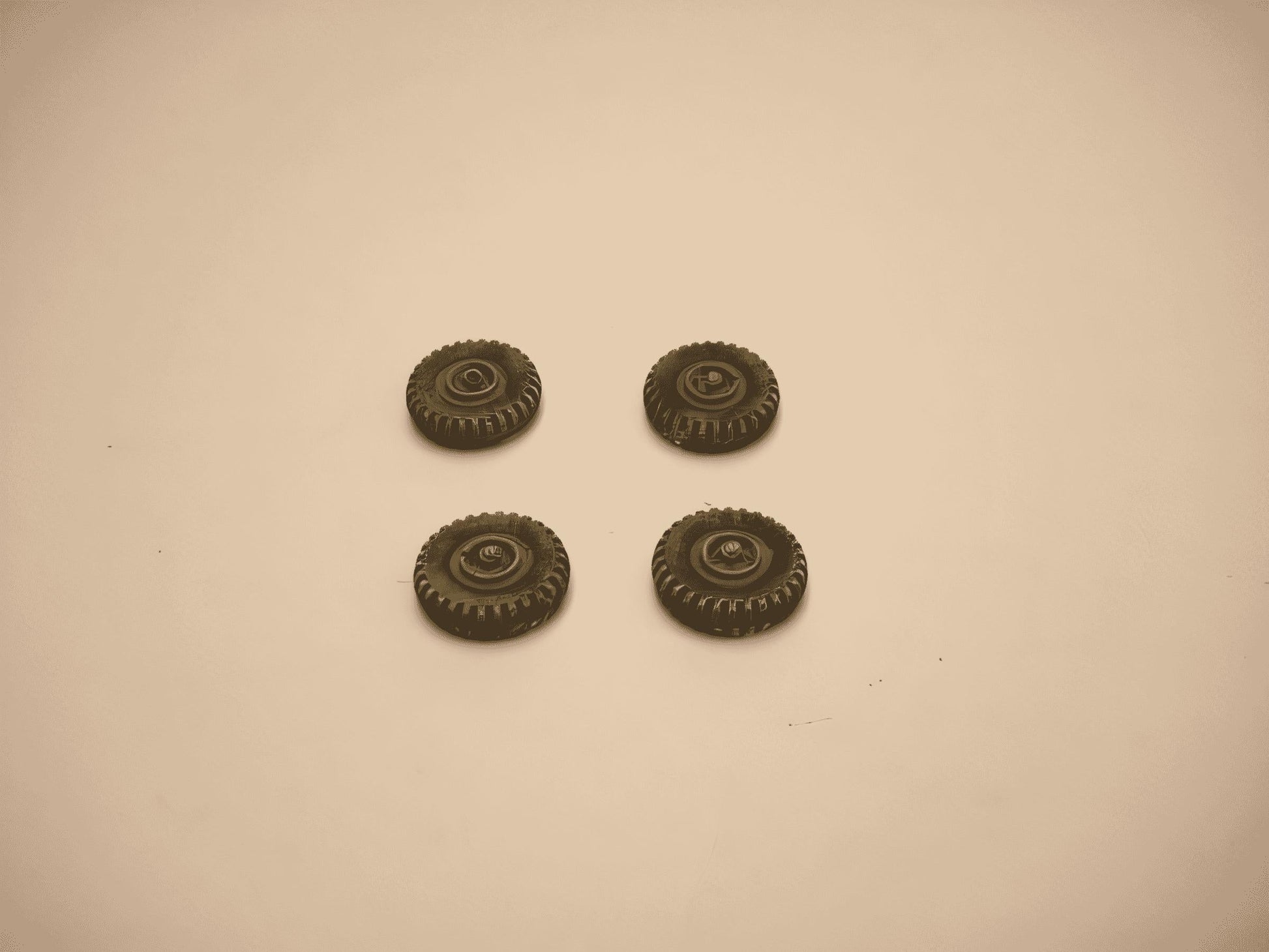 A set of 4 wheels with tyres from our Willys jeep model. Can be used for lots of other applications.